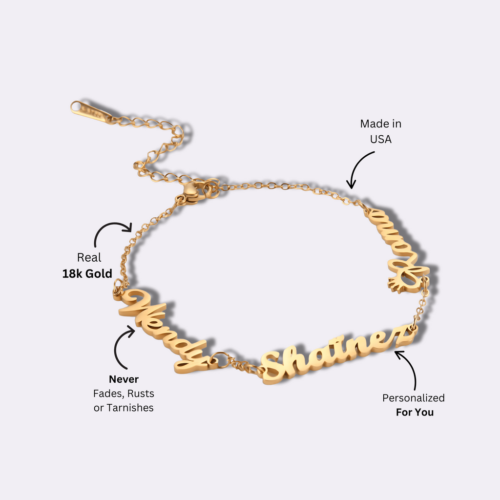 Elevate your style with our Multi Name Chain Bracelet, a sophisticated piece designed to celebrate individuality. Crafted with care, this bracelet allows you to showcase multiple names, making it a perfect gift for yourself or a loved one. Embrace the beauty of personalized jewelry with this stunning bracelet, designed to capture your essence in a truly unique way.